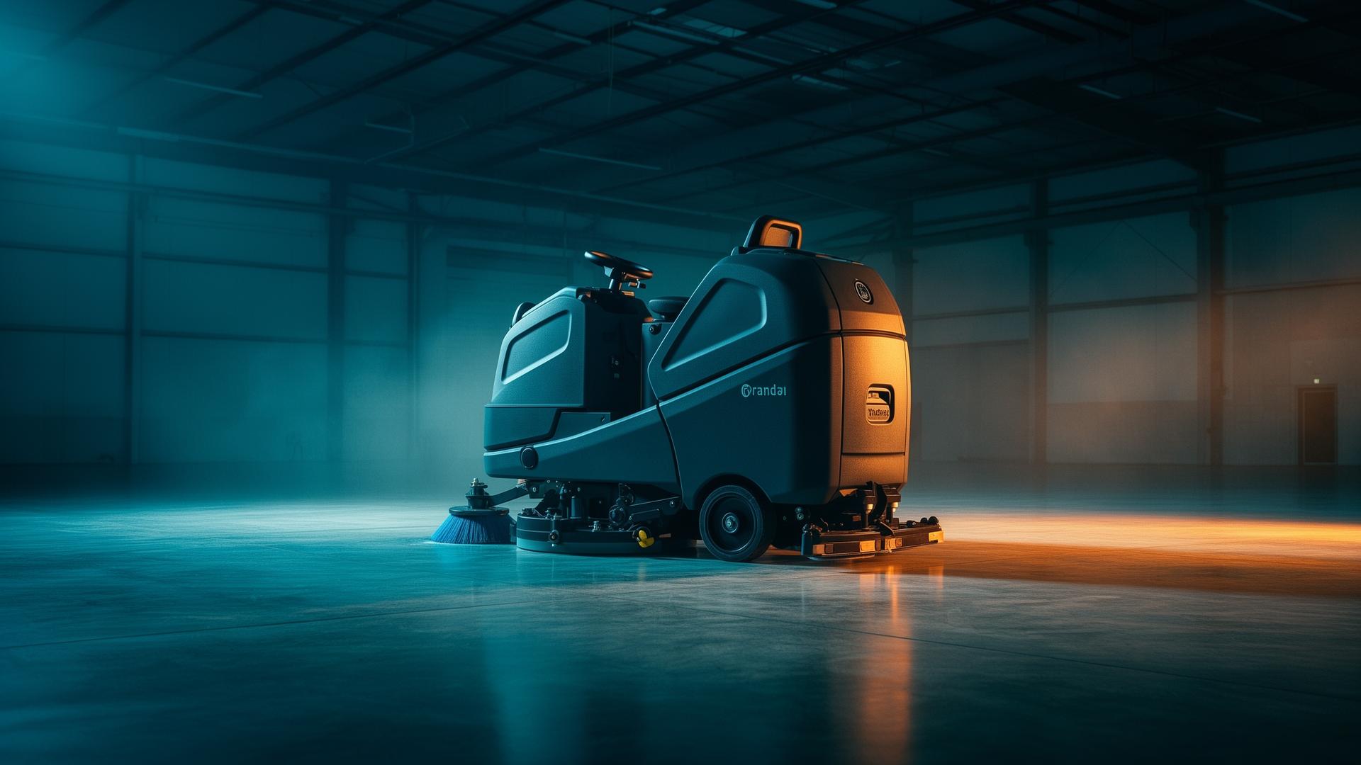 Autolaveuse autoportée robuste pour grandes surfaces industrielles et commerciales.